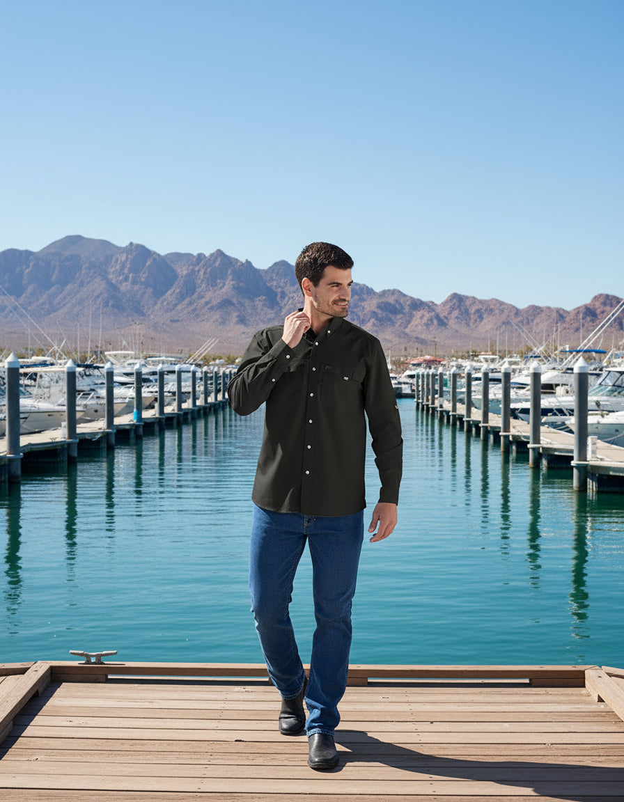 Camisola técnica diseñada para actividades al aire libre con protección solar UPF 50 que bloquea hasta el 98% de los rayos UV. Confeccionada en tejido stretch 100% poliéster, ofrece comodidad y libertad de movimiento en cualquier condición. Cuenta con bolsas frontales y dorsales con cierre de velcro para almacenamiento seguro, además de rejilla de ventilación estratégicamente ubicada en la espalda para optimizar la circulación del aire y mantener la temperatura corporal regulada durante el ejercicio intenso.